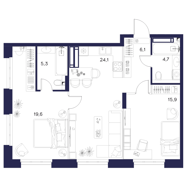 Купить 2к квартиру 76 м² в DEWELL group